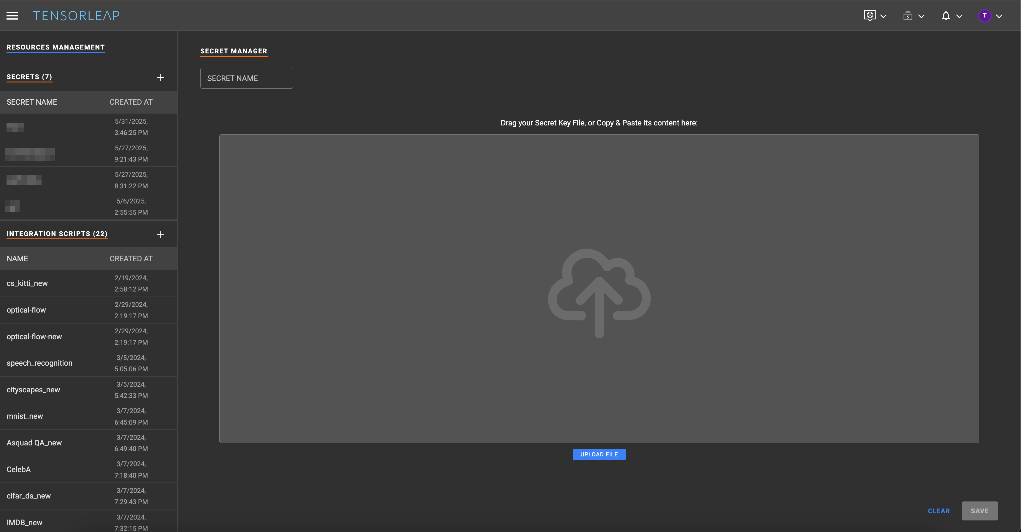 Resources refer to Secrets, Datasets, and CLI tokens that you can use within the Tensorleap platform. They are set up from the **Resources Management** page.